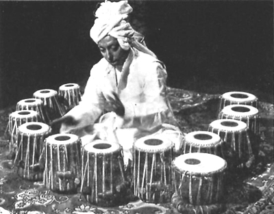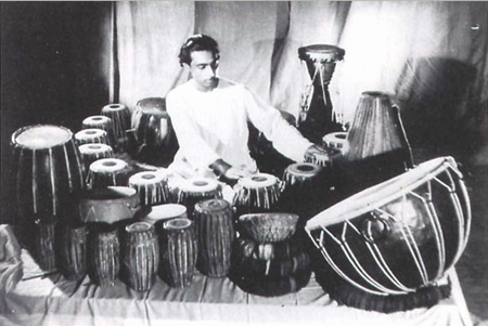 Kamalesh Maitra als MUSTER DRUMMER des Uday Shankar Balletts in den frühen 50er Jahren.
